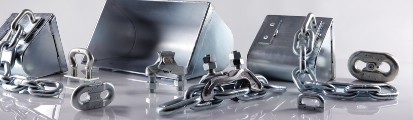 Spinka dla odcinków łańcucha HV i DS. Ogniwa złączne mają te same parametry technologiczne co łańcuch z pręta okrągłego o wysokiej wytrzymałości na ścieranie. Należy zwracać uwagę na prawidłowy montaż i położenie spinek łańcucha – patrz instrukcja montażu; mogą być one mocowane tylko jako pionowe ogniwo łańcucha. Ruch kół łańcuchowych, gładkie rolki zmiany kierunku i rolki rowkowane tylko w położeniu pionowym.